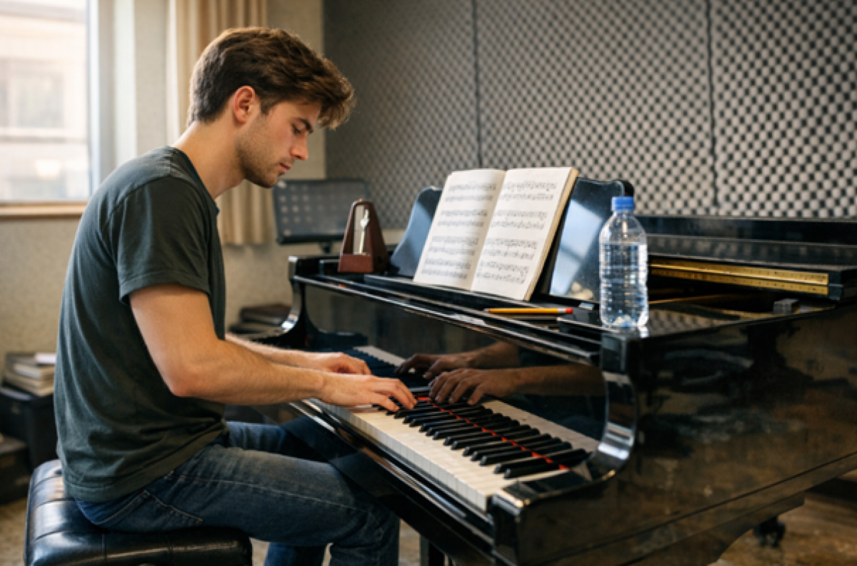 Ja. Du bekommst einen 12‑Monats‑Plan (in 4 Phasen), Wochenbausteine für Klassik vs. Pop/Jazz, ein Mock‑Audition‑Protokoll und typische K.O.-Fehler – damit du deine Vorbereitung planbar machst und nicht von Termin zu Termin improvisierst.