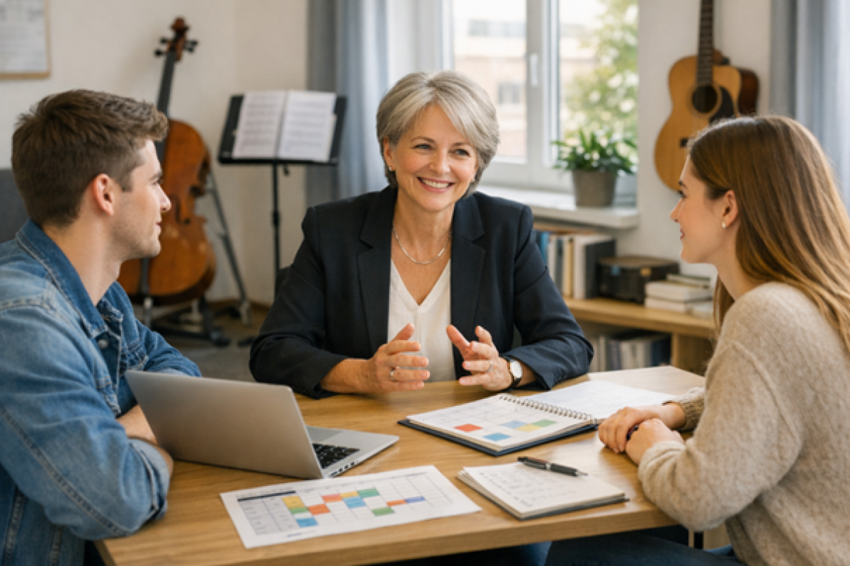 Ja. Eltern erhalten einen klaren Überblick zu Kosten, Umzug, Anforderungen, Zeitplanung und realistischen Berufswegen – ohne Druck, aber mit Struktur. Schulmusik/Lehramt ist als eigener, stabiler Bildungsweg eingeordnet (Alltag, Passung, Anforderungen, Alternativen).